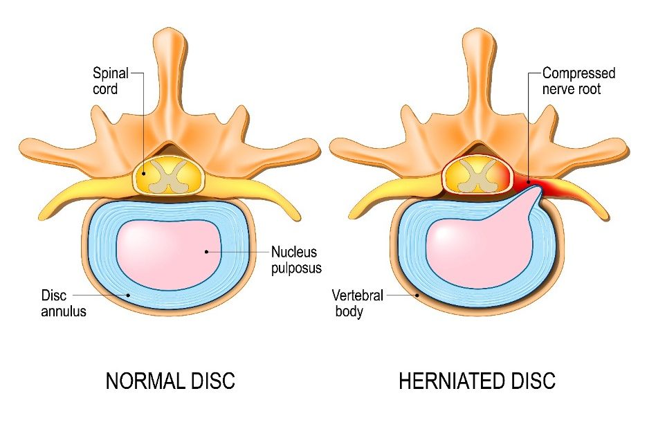 A spinal disc is made of an outer thick material and an inner softer substance. The two serve to cushion the vertebrae. A herniated disc occurs when there is a crack in the thick material allowing the softer substance to come out and rub against the nerve. This can happen anywhere along the spine. When it happens in the neck, the term used is a cervical spine herniate disc. The nerve that is pressed on can become pinched.