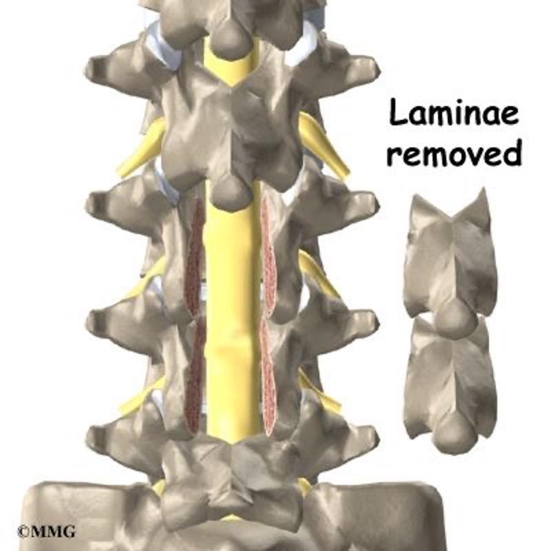 The surgery for cervical spinal stenosis is usually posterior cervical decompressive laminectomy. During this procedure your neurosurgeon removes he back part of the spine and creates more room for the nerves. Sometimes your neurosurgeon may place small screws and a bone graft in the back of the spine to stabilize the spine. When this is done it is called posterior cervical decompressive laminectomy and fusion.